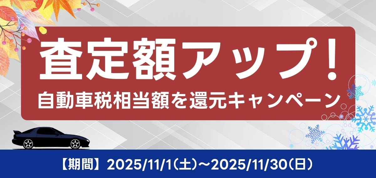 11月は旧車王にとって期のスタートです。今年は、長年のご愛顧への感謝を込めて、あの「重課自動車税」の負担を丸ごと相殺するスタートダッシュキャンペーンを行います。